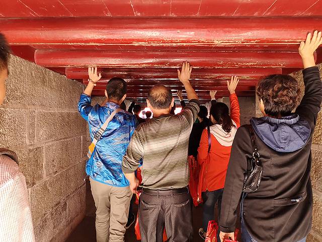 每跨过一道门槛都会触摸不同东西,且触摸方向寓意都不同。当天南岳大庙上香人多,一定要紧紧跟随舅 舅步伐,每到一个门槛都会提醒,每过一个殿堂如何进如何出都会在旁边交待好。
