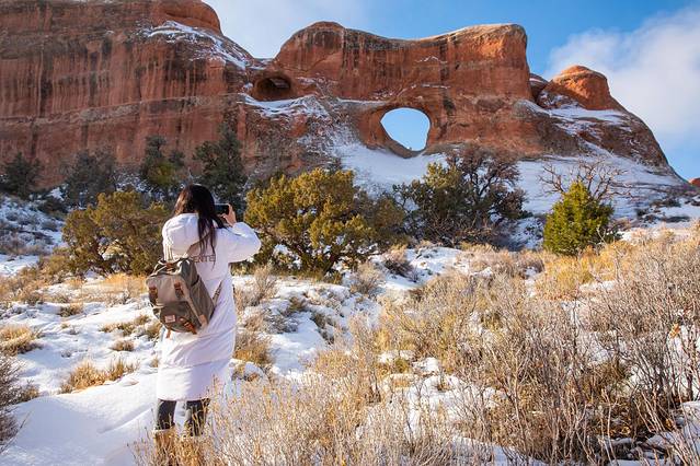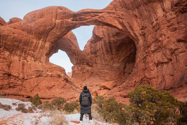 双拱门double arch是这一区域形态最特别的,公园的规定是所有拱门不能攀爬,这里有人爬到双拱门下面,这样就不算违反规定,破坏生态了吗?