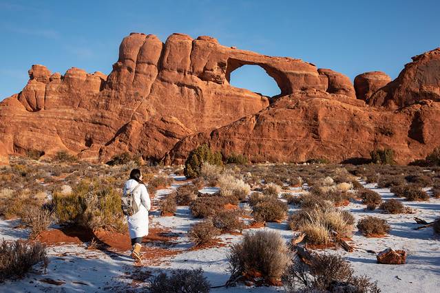 犹他州 最有名气的国家公园,如果只能选一个 犹他州 的国家公园游览,绝大部分人都会把拱门当作首选,就连大部分 犹他州 的车牌也都拿拱门作为背景,可见当地人有多爱它。我们选择用一整天时间用脚步丈量,细细体味它的美。