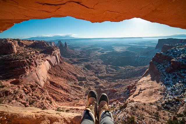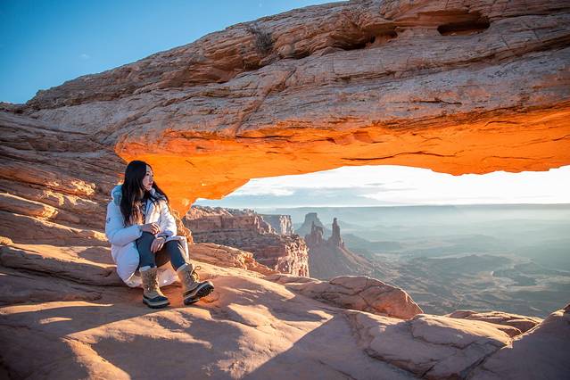 台地拱门mesa arch绝对是moab附近的国家和州立公园中最适合看日出的地点,没有之一!距离moab40多公里,再加上从停车场步行到拱门前需要的15分钟,至少要在日出时间前1小时从酒店出发。在这里碰到了此行最多“老法师”,我们日出前到达时,跨度不大的拱门前满满一排三脚架,最好的机位已经都被占满,只好夹缝中求生存...