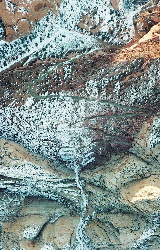 之字形山路burr trail switchback比起之前峡谷地公园里的white rime road的那段之字形山路更加险峻,本来计划走这段路下到山谷底部,结果因为路面转弯处有冰雪,走了一小段就掉头回去了。
