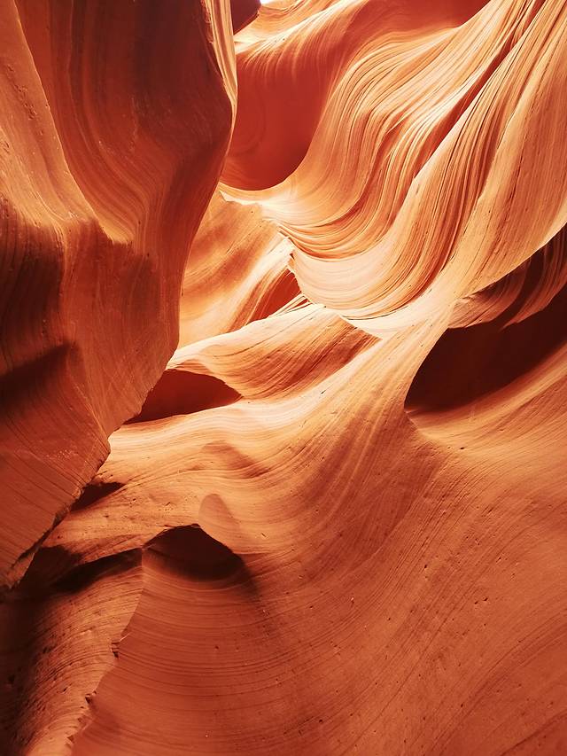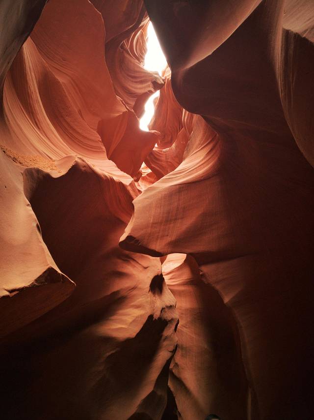 冬季太阳高度角低,无论上、下羚羊谷,谷内都没有直射进来的阳光,上羚羊谷上窄下宽,下羚羊谷上宽下窄,所以冬季下羚羊谷内光线会比上羚羊谷好一些,相对更适合在冬季游览。我们就只选择了下羚羊谷游览,非旺季不用提前网上订票,直接现场买就可以,个人认为也没有必要选择价格翻倍的摄影团。出乎意料的是,淡季游客也非常多,游览体验不好,赶鸭子上架的感觉。导游会帮忙把手机相机都调到最合适的模式,色温阴天模式,适当提高感光度,在这里人人都是摄影师...需要注意的是不能携带三脚架、手机云台等设备,不能带包。游览时间45分钟左右,建议随身携带美元零钱,游览结束后给向导小费。