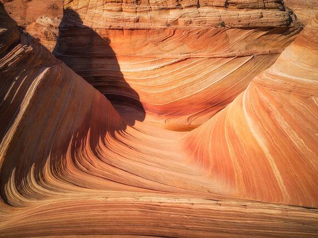 这里的地貌是由数百万年的风、水和时间雕琢砂岩而形成的。波浪谷岩石的复杂层面,是由一亿五千万年前侏罗纪时期就开始沉积的巨大沙丘组成。那个时期,这里就像巨大的沙漠,沙丘不断被一层层浸渍了地下水的红沙所覆盖, 天长 地久,水中的矿物质把沙凝结成了砂岩,形成了层叠的结构。这种古老的沙丘最后形成了被地理学家称为“纳瓦霍(Navajo)砂岩”的地貌。后来,随着科罗拉多平原的上升,加上漫长的风蚀、水蚀,峡谷里的砂岩层次逐渐清晰地呈现出来。创造出了现在呈现出的令人炫目的三维立体效果。
