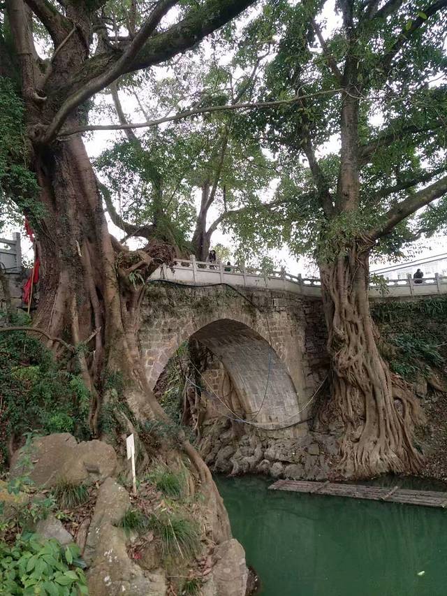 树与桥,桥与树,已经成为一体,4棵千年的古树。