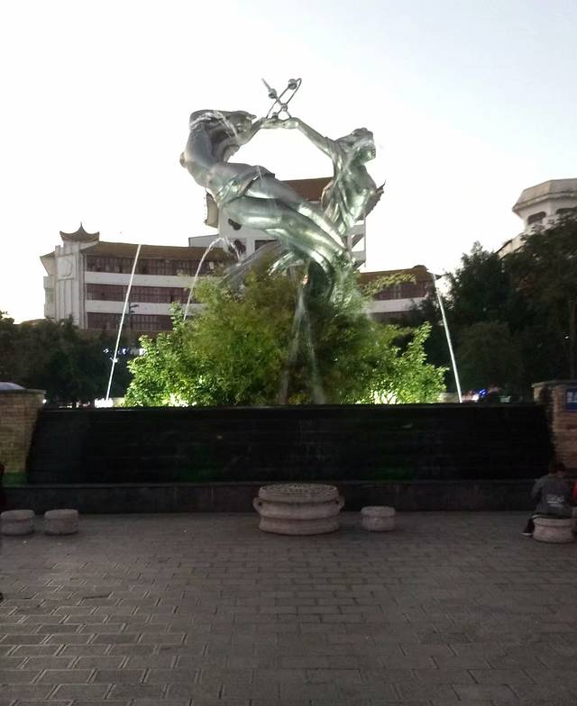 街心花园,可以说是地标建筑吧!四周发散有杨柳街、豆芽街、铁匠街、沙井街,购物、吃饭都可以。
