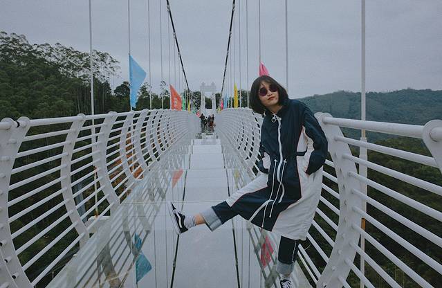 酒足饭饱后,我们就正式开始今天份打卡项目:鼓鸣岩景区的玻璃天桥,传说中是厦漳泉唯一一座10D的全透明玻璃天桥,带上鞋套,走上去的确很刺激,大概有30层楼那么高,可以很仔细的看到下面的峡谷,走到中间的地方还有点轻微晃动,快结束的地方,竟然有玻璃炸裂的高科技,吓到随行的小伙伴了……玻璃滑道就在天桥结束的地方,可以穿上景区准备的滑道裤,从山上可以一口气滑到峡谷,也可以用脚控制速度。