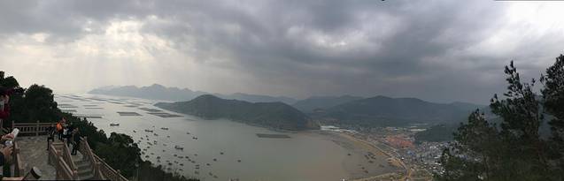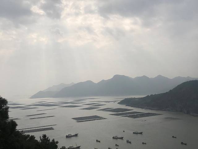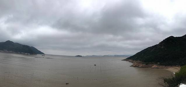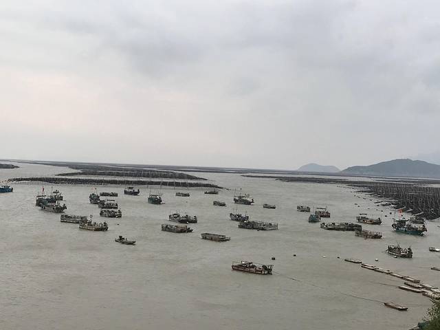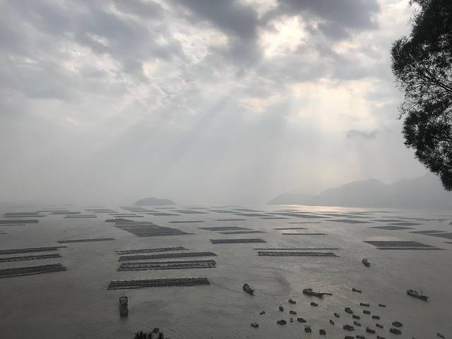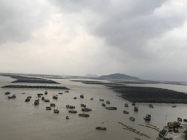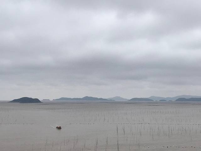 风实在太大,把所有的衣服穿身上还是冷!不想留下遗憾,想最后看看霞浦的日落,我们找了一个避风的地方等待,一个多小时过去了,没看到日落,只看到乌云后的一缕光、看到退潮后海面上渐渐升起的养殖紫菜的架子。这些架子一片片隐藏在海水中,只有退潮才露出来。据小王讲,来霞浦3-5月看海带、7-10月等台风、11-2月就是看紫菜了。这里是全国最大的紫菜生产地,头水的紫菜口味最佳,可凉拌、煮汤......,他给我们安利这里的紫菜,不过在霞浦的几日到处可以看到卖紫菜的。我们第二天上火车前还是去了小王推荐的地方买了紫菜、海带,又被安利了当地的白茶。