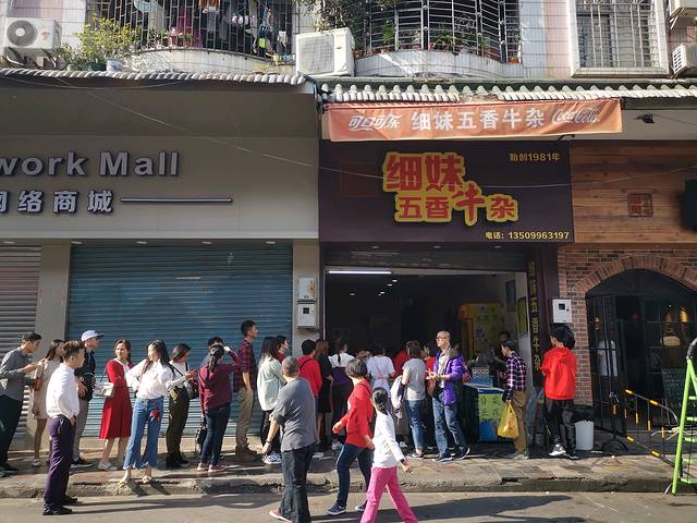 第一站直接往清晖园附近去,那里有几家网红美食店,第一家细妹牛杂店,刚到就发现排起了长队,心里很期待,S排队,其他的人分头觅食,排了差不多半小时,买了三份牛杂,主要是牛杂、牛肠、油豆腐,味道一般,网红味道有点夸大其词吧。