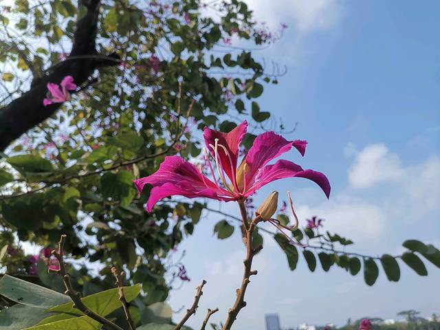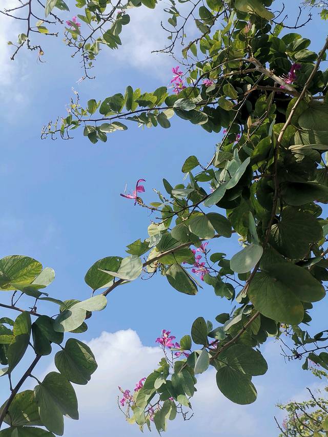 问了当地的司机师傅,说街道两边的是紫荆树,全是盛放的紫荆花。