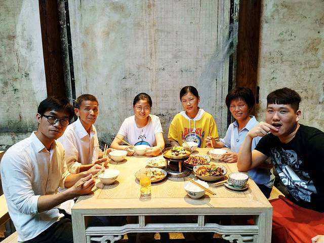 五月三十号了,明天我就要回 北京 了。最后一晚,大家围坐在一起。“小猪,木头,别动筷子,我先照张全家福啊!”我喊道,不喊不行,这两个小同志每次上桌都像两只在寒冬中的冒着风雪觅食的西伯利亚饿狼,盯着桌上的美食就像是狼群看到雪地里的小 北极 狐或野兔一样,连我们都可以感到他们目光中的寒意。哈哈,木头28岁,小猪23岁,也难怪他们总是饿,都还是小孩子,还在长身体,不过无论如何,我也是要先留影,再开饭!当姐姐的我还是很有威慑力的,喊了不听是吧,那我用筷子敲你们,再不听,我就是使劲敲!所以啊,大家看到这张照片的时候,要体谅到小墨我这个摄影师的不易,好不容易管住这两个熊孩子才得以把大家和所有的菜品都完美地呈现在大家的眼前。