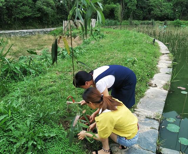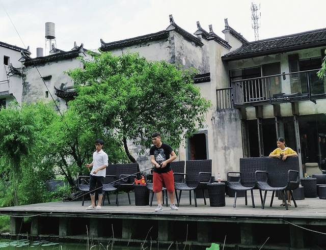 期待回到墅家,到家后发现每晚我喝茶,发呆,任凭自己思绪乱飞的荷塘边今天无比热闹。墅家的每一个人几乎都在那里。木头和小猪在钓鱼,墅家这变换不穷的活动简直是太棒了。飞快地冲上楼,放下东西,我便也来凑热闹了。今年墅家前地这片荷塘看不见荷花,连荷叶也是星星点点,少得可怜。俞叔说是因为池塘里的鱼太多了,它们会吃掉荷叶和荷花,到了今年快冷的时候,他们会把水放掉,清理一下池塘里的淤泥,也顺便把这些吃荷花荷叶的鱼儿们给打捞上来。