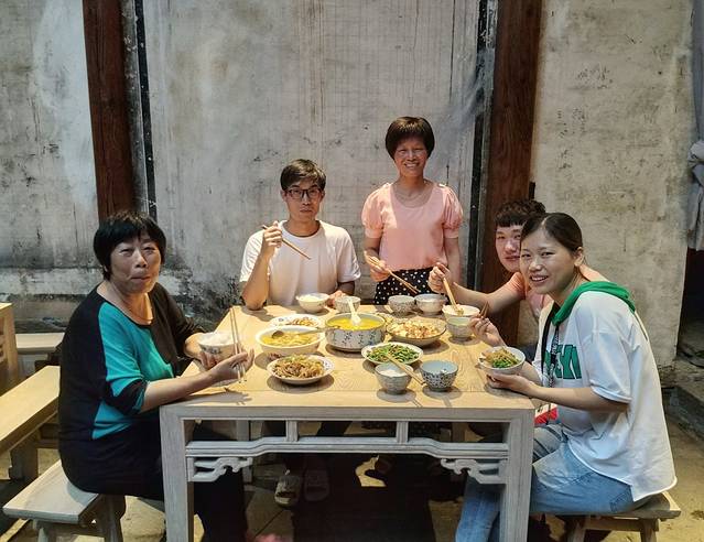 左起:俞阿姨、木头、春英姐、小猪、芳芳