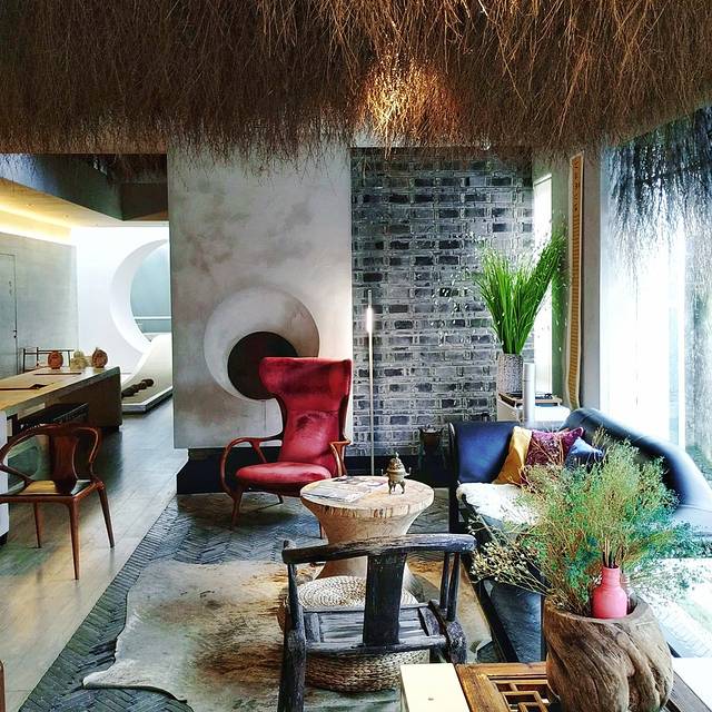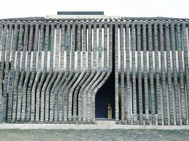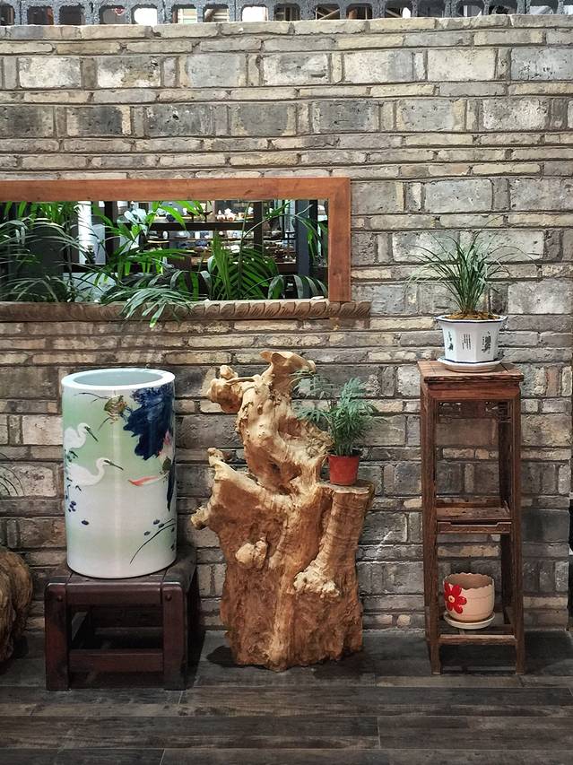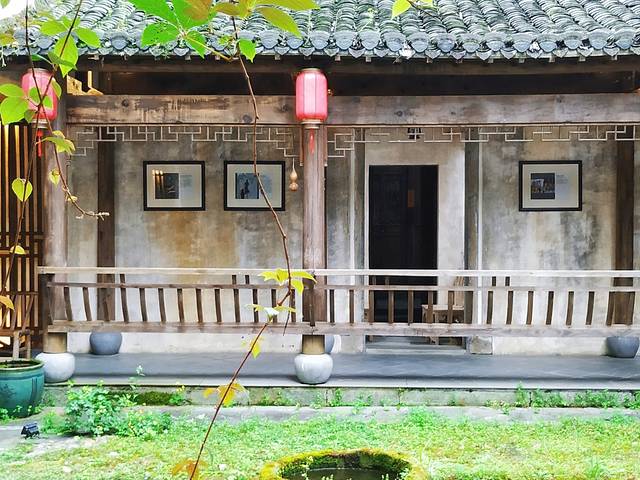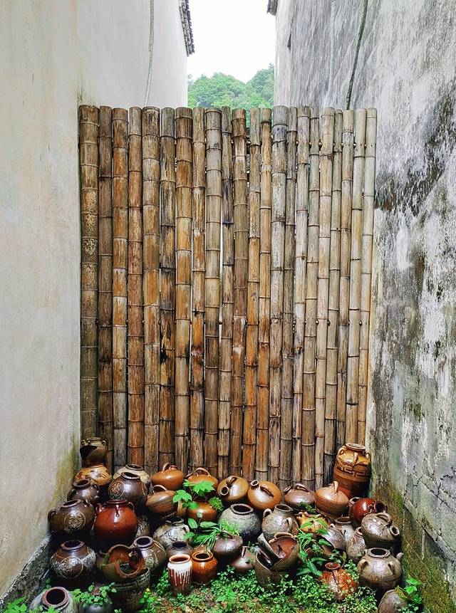这张照片是我要离开前拍的,如果你知道美猴王的水帘洞,那么这里就是就是带有浓浓江南水乡气息的瓦帘“洞”,单单看这门口的设计,很多人就会已经开始膜拜这所客栈的设计师,一位从新疆远道而来的人。客栈是由两幢毫不起眼的老旧房子改建而成。设计师的设计精巧绝伦,圆形拱门、青砖墙、老瓦片等都是古朴原声带而元素;买进客栈竹枝、竹桠营造出乡野的意境;而水泥、设计师家具又为这个空间注入了鲜明的现代气息。请耐心地往下看哈。