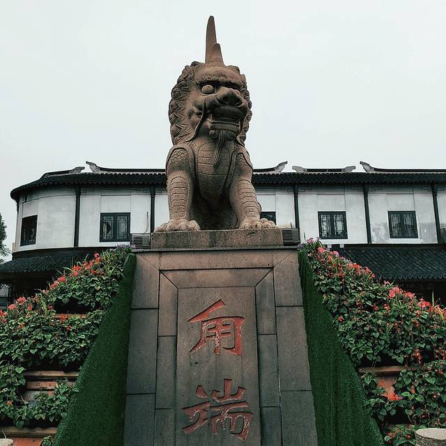 感谢万能的百度百科解答了我关于甪端这只神兽的有关疑问。它与麒麟相似,且与其一并是古代流行于官场和民间的一对独角兄弟。在官方,它们象征光明正大,秉公执法;在民间,它们象征吉祥如意,风调雨顺。 甪直 有着和 苏州 老城一样长的历史----2500多年,但是在历史的长河里, 甪直 没有战荒,没有旱涝灾害,人们年年丰衣足食,据说就是因为这独角神兽甪端巡查神州大地路径这里,见这里是一块风水宝地,因此便长期落在这里,保佑这一方平安。