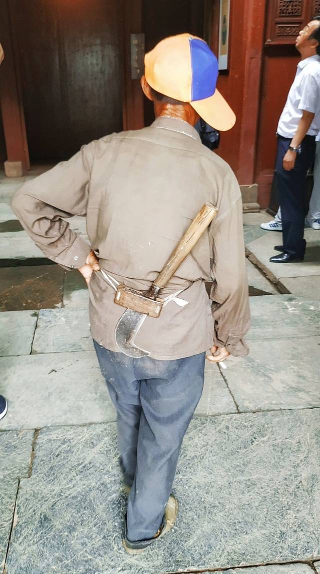 哪个山头儿的山大王来了?哪个帮派的扛把子来了?没有捕捉到老爷子的正面,毕竟是偷拍,还是来张背影吧。虽然老爷子没有伟岸的身材,但歪戴小帽,手拿香烟,腰后插着把镰刀,足可以看出老人这悠然自得的心态。真的很喜欢 婺源 人,尤其是这里的老人,一个赛着一个酷,一个赛着一个自在,一个赛着一个善良,一个赛着一个可爱!