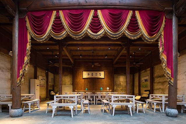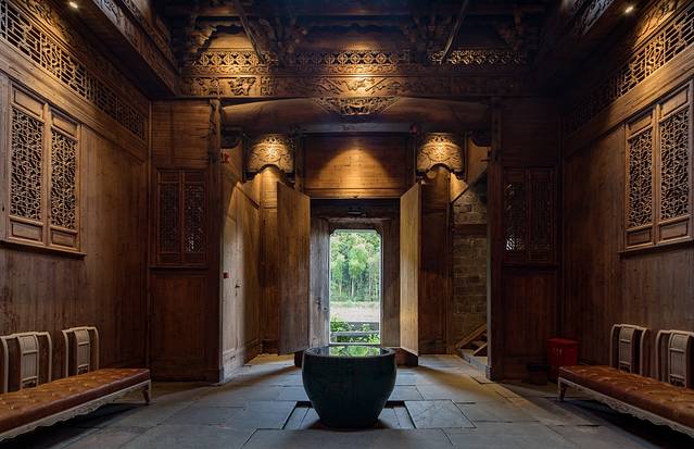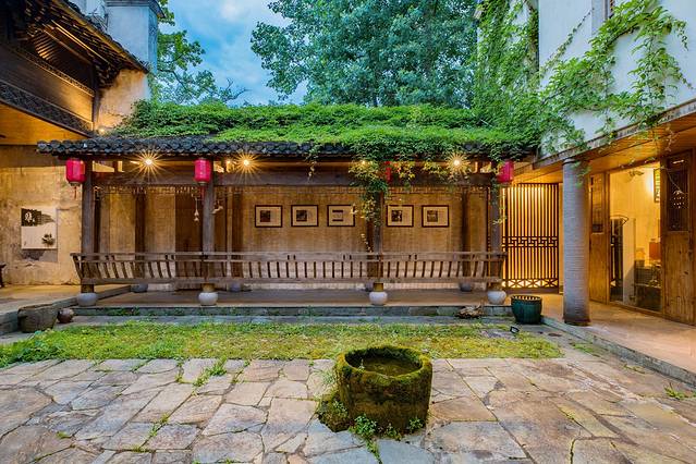 静谧的西冲村村口,几株百余年的苍翠老树静静矗立,掩映着青瓦白墙的“正和堂”。这是一幢处处残留着岁月印记的始建于1822年的清代祠堂。本以破败不堪的祠堂,经过设计师聂 建平 先生的那巧妙绝伦的设计和改造,她仿佛盘涅后重生,散发着她那迷人的 徽州 独有的魅力,她,就是位于 婺源 西冲村的墅家西冲院,一个你来了就不想离开的地方。走进去,你便看到斑驳的墙面,木制的长廊,精美的木雕,古旧的窗棂搭配着青山绿水,霎那间如置身山水画中。