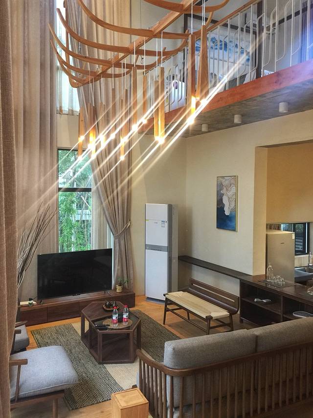 我住的这间loft叫“百家”,没错,百家姓的百家,百家争鸣的百家,而今晚只有我小墨一人来住,所以今晚的百家便只是郭家。一进门是厨房和餐厅,再往里是客厅,宽敞明亮的客厅。虽然百家是loft,但是它的高度是两层建筑的高度,因为它是跟旁边的两层楼连在一起的。超高的挑空给予了百家超好的视野,尽管我走进来的时候已经是炊烟四起,晚霞初上,但是斜阳的光仍可以穿过餐厅及餐厅上一层的卧室照射在客厅里。很喜欢这灯光、 日光 的结合,尽管这精彩的一天马上就要落下帷幕,此时的我已经有种预感,今晚在百家,我一定会睡个好觉。