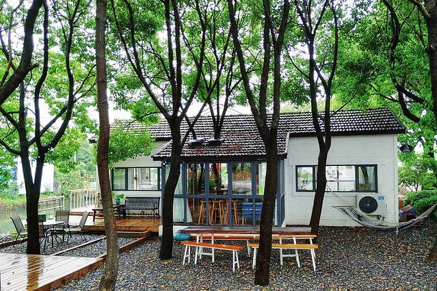 原舍阅水是在计家墩开业的第一家民宿,也是目前营业的两家民宿之一。原本5月25日和26日都打算住在这里,但是26号满房,所以我只能另选住处。在从高铁站到计家墩的路上,接站的司机师傅说作为 昆山 本地人的他这次是第二次来计家墩,这里只是个普通得不能再普通的村庄,他实在不明白是什么吸引我到这里。高铁上看景看书看得有些累了,所以我只是敷衍地回答说:“来看 江南 梦里水乡。” 这张是在原舍门口拍的,满眼的浓浓夏意。这里看到的绿色使我想起了英文字典里和绿色有关的词汇, 看来还是英文的修饰性更强。也就是熊熊此刻没在我旁边,否则他肯定会说我是假洋鬼子。