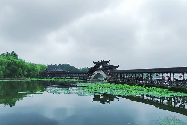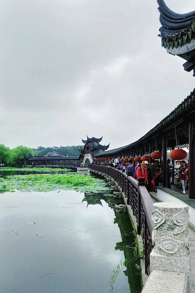 锦溪 古镇如同 江南 其他那些古镇一样,桥多,而且每座桥都有每座桥自己的故事。看着这景,我想起“虹桥千步廊,半在水中央”。远处的柳枝叶婆娑,近些的荷碧盘滚珠,站在此处便是最好,何必要走过这座桥呢?走过去,美景便不复存在!