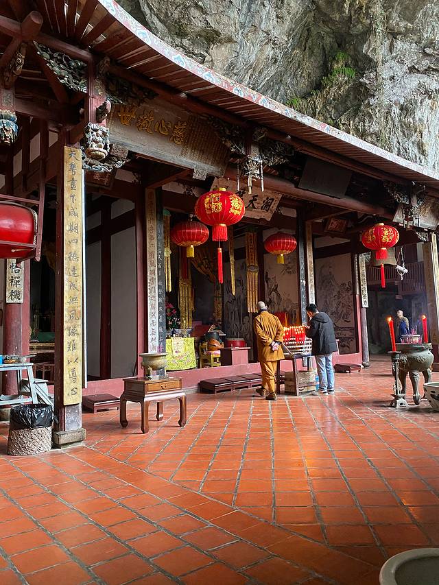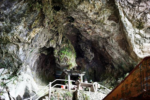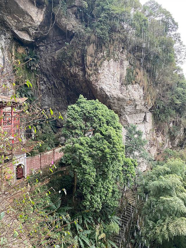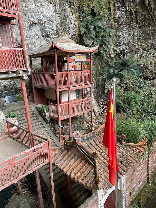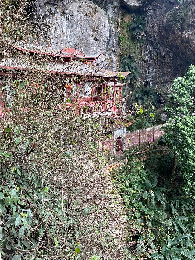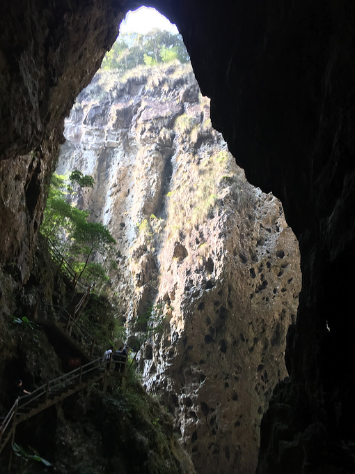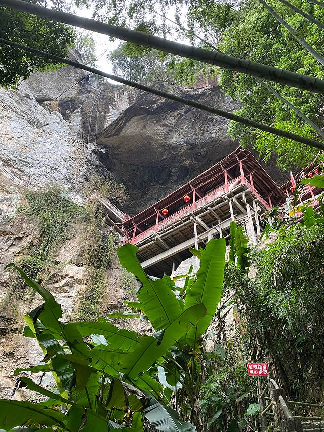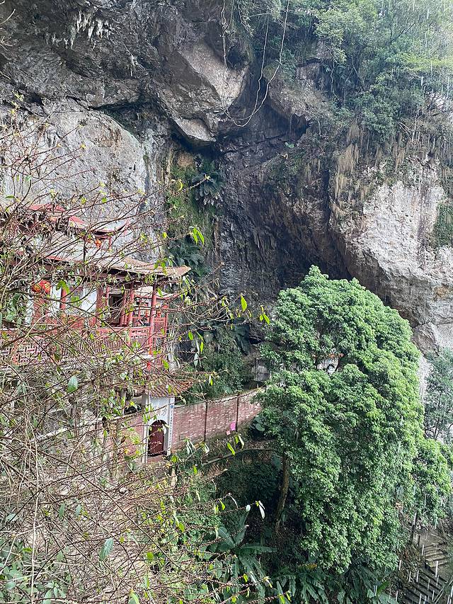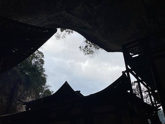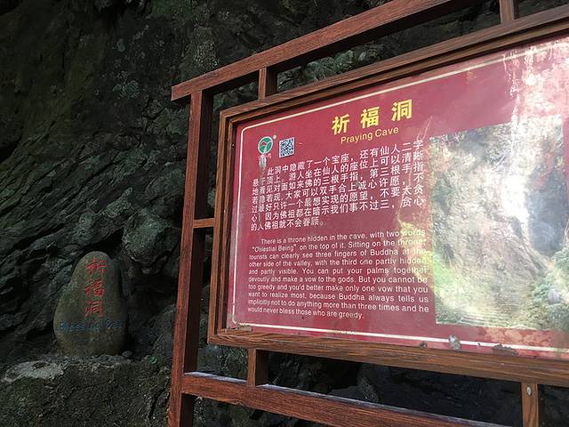 祈福洞。天坑内壁上的“仙人洞”,洞中隐藏了一个宝座,还有仙人二字悬于顶上。坐在仙人的位置可以看见对面如来佛的三根手指。第三根若隐若现,暗示我们不要太贪心许一个愿就好,事不过三...