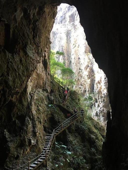 丹霞地貌中藏有数百米深的巨大环形天坑,天坑底有数百平方米的巨洞,洞中千只鸽子般大小的蝙蝠扑腾飞窜,天坑内壁上的“仙人洞”,十余丈高的洞顶中央“澡井”居然真有“天人”大书“仙人”二字...