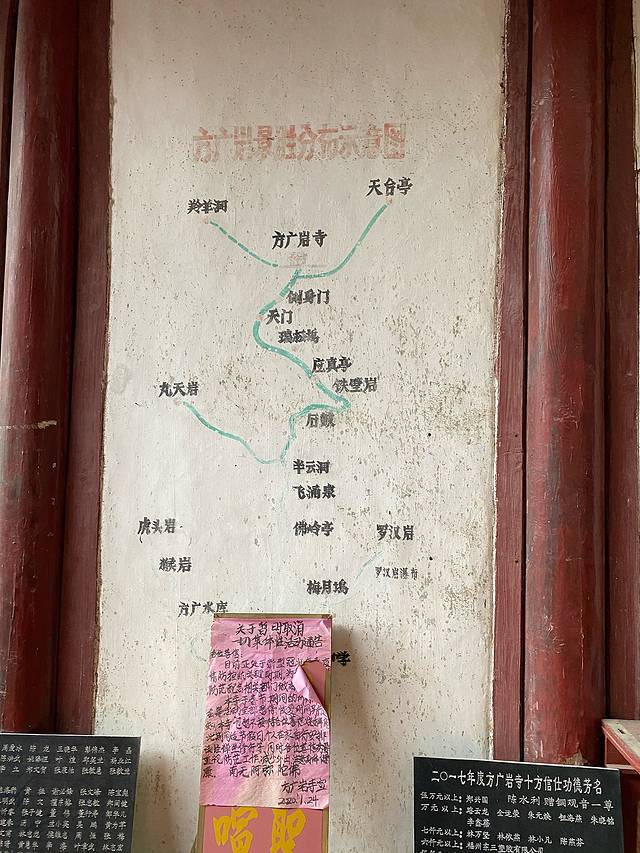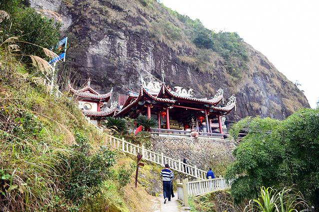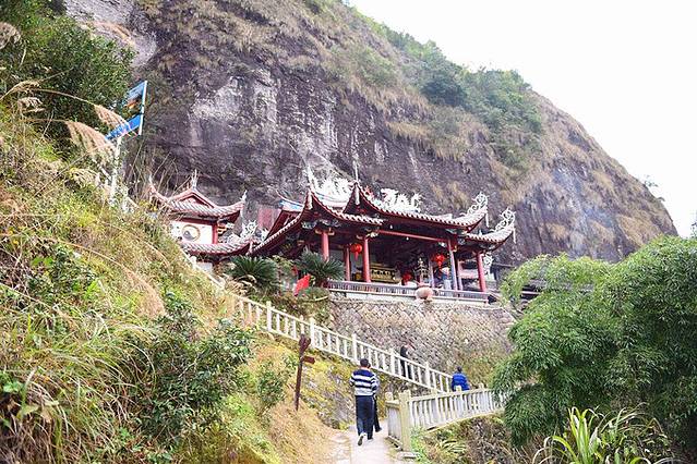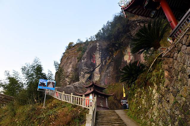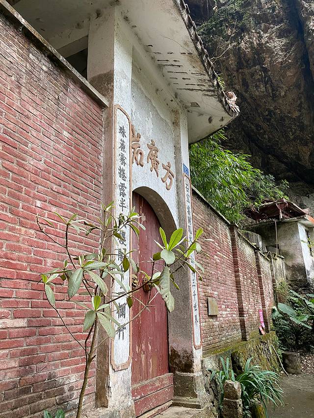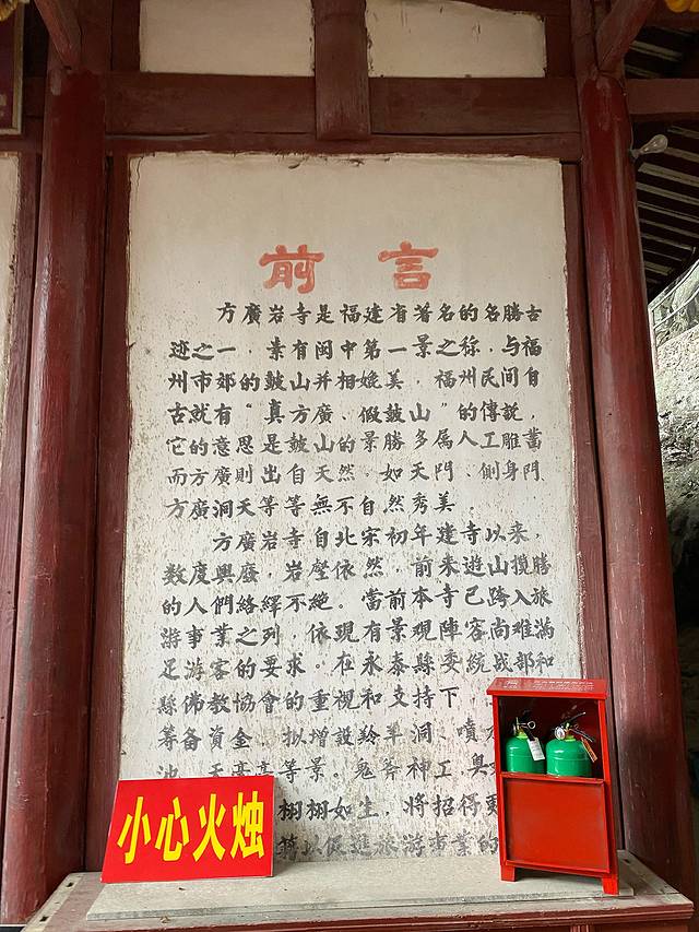方广岩寺位于福建省福州市永泰县城东约20公里的葛岭镇山腰。据《闽都记》载,它开辟于五代,是一天然岩洞。山下有一清溪,两山夹峙,水波潋滟,与方广岩组成一幅天然风景画。山中有清朝薛朝晤、龚易图的纪游题刻。古松道尽头到方广岩还须登数百级古蹬,中经一巨岩旁,又有两巨石耸立如门,分刻“天关”、“石门”二字,俗称“天门”。