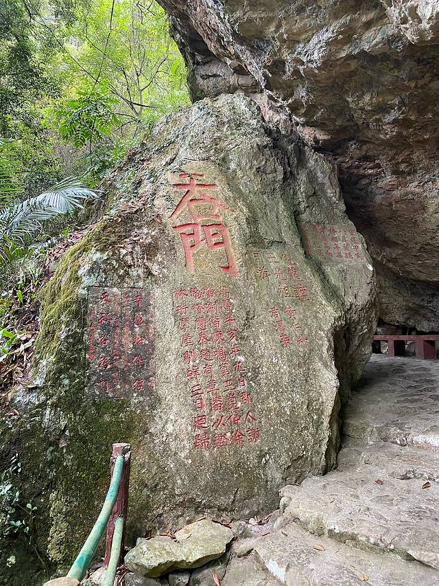 “方广岩”。溶洞高约120米,深、宽各90米,可容纳千余人,洞内石钟乳、石笋、石柱、石幔等自然形成“入水蛟龙”、“出山猛虎”、“驰骋战马”、“出洞青蛙”、“爬壁乌龟”、“翻跳鲤鱼”、“观音抱子”、以及“葡萄架”、“石榴园”、“万年松”、“红腊梅”等三十余景,无不惟妙惟肖。