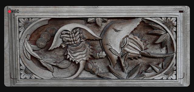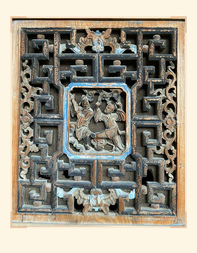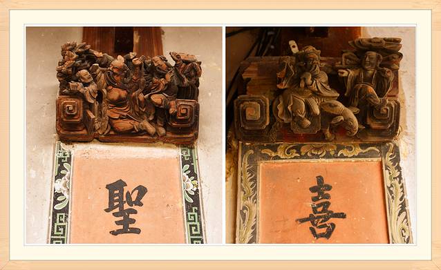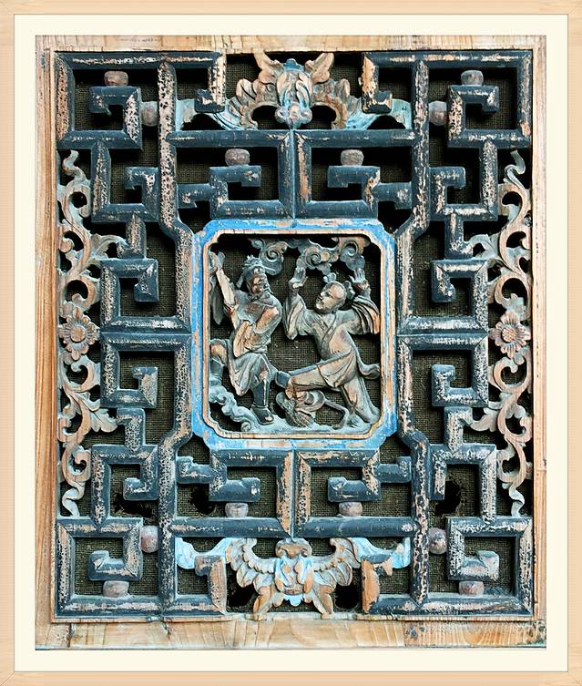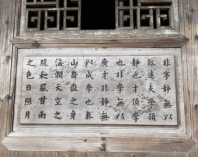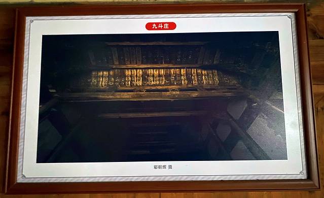 永泰当地文化研究人士邵永裕介绍说,在九斗庄厅堂左右厢房处,建庄主人共留下16块规整的木雕书法面板,它位于大厅两厢的一排隔扇窗涤环板上,书法与雕刻造诣都十分精湛,内容有三国时期,但多为宋、明、清三代理学名家有关劝学家教方面的语录。