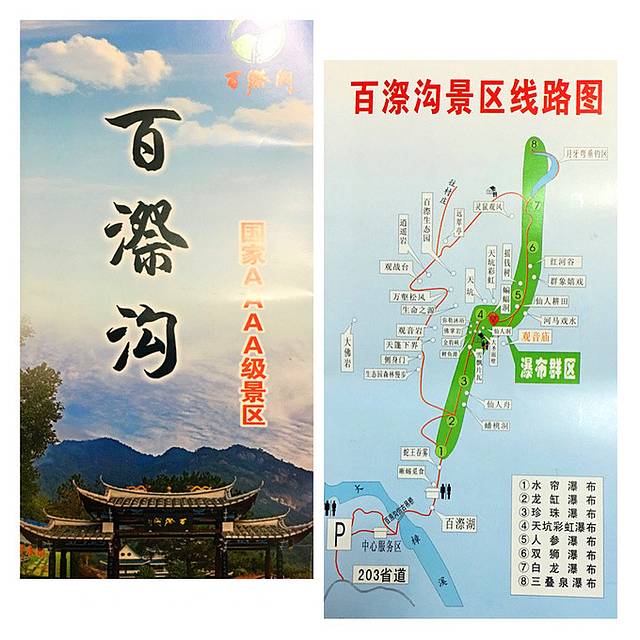 百漈沟由水帘瀑布、龙缸瀑布、珍珠瀑布、天坑彩虹瀑布、人参瀑布、双狮瀑布、白龙瀑布、三叠泉8大瀑布组成。