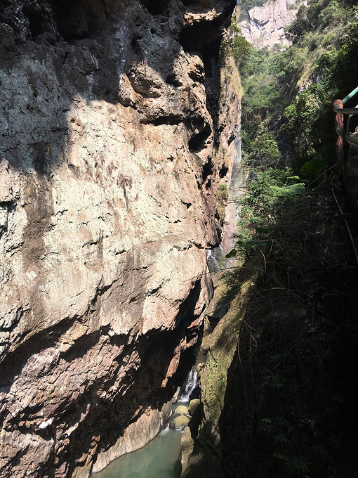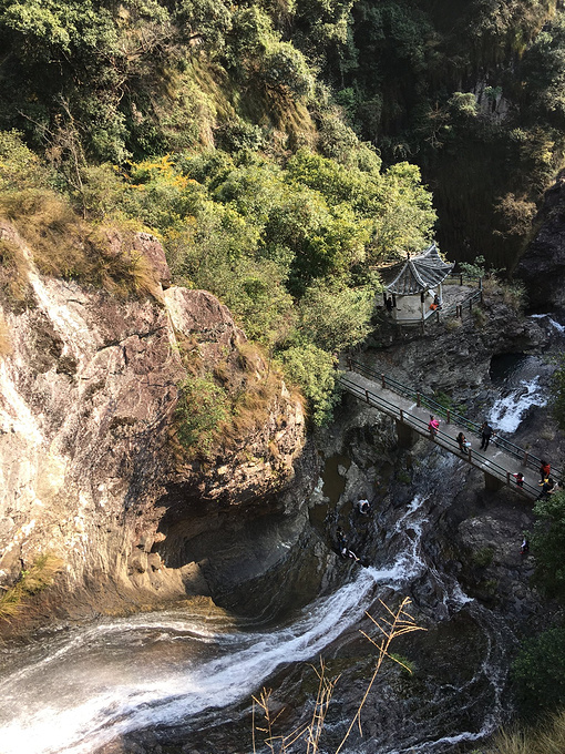 悬崖绝壁要数百洞峡最具奇观,峡长百米,岩高百米,与对面悬崖合成峡,与侧面瀑布震出雾。气温与外相比差10度。暑酷午餐人无汗。深入三洞景,蝙蝠成千上万,掷石惊飞黑压压。洞外急水白哗哗 。白水漈仰角100米以上,而上白尾漈高30米,上白源漈高60米,曲折迂回,百漈沟瀑布最高落差100米,急风急水落石出,奇景天成,四级直上400米,远观无踪,近听似雷声。