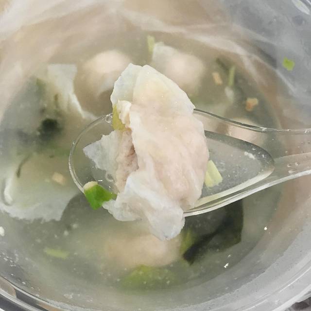 西马路对面的【十八曲】鱼皮饺汤,15元/碗,里面有紫菜,还不错。
