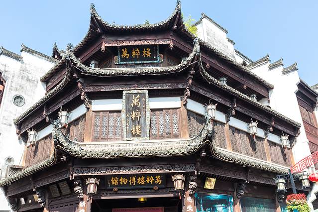 老街上的万粹楼博物馆是当地人引以为荣的建筑,也是中国首家古建形式的私人博物馆,藏万千精粹于斯楼,走进万粹楼映入眼帘的是飞梁红柱,宽大轩敞,一池清水,石雕小桥,一楼为九百砚堂,主要是歙砚为主的四大名砚和文房四宝,二楼藏7500年前的恐龙化石,汉代佛像,鎏金菩萨,嘉靖鱼化龙铸钟,康熙十连屏风木雕,乾隆大供桌,慈禧龙凤双飞龙椅,光绪二十五年圣旨等等,三楼是傅抱石、唐云、关山月、国内外各政要领导等五百余件当代名家佳作,顶楼是徽州世家建筑风格的,几进几出的厅堂、小阁楼等。一定要进去看看,仔细聆听下每个藏品的千古传奇。