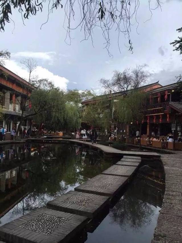 相比 丽江 大研古镇,还是更推荐 束河 ,因为人比较少,更加适合喜欢清净的人。沿街漫步从雕梁画栋的挂着“ 束河 古镇”四个字的大牌坊走进去,沿着两边都是店铺的石板路面可以一直走到古镇中心,像大研古镇一样,这里也叫四方街。当年的四方街,是马帮交易皮毛皮货的场所,现在的四方街,四面都是各种商铺,依稀可以感觉得到当年的繁华。