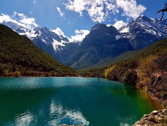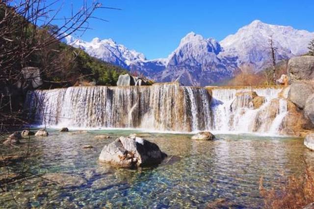 蓝月谷是由 玉龙雪山 融水 白水 河流经此地形成,池水清澈见底,而且一片奇幻的蓝色,非常震撼眼球。