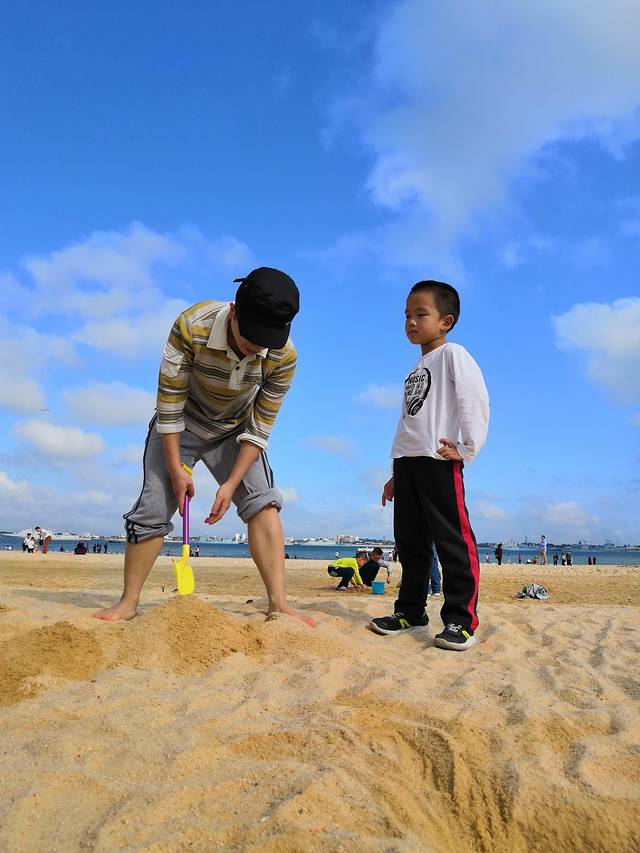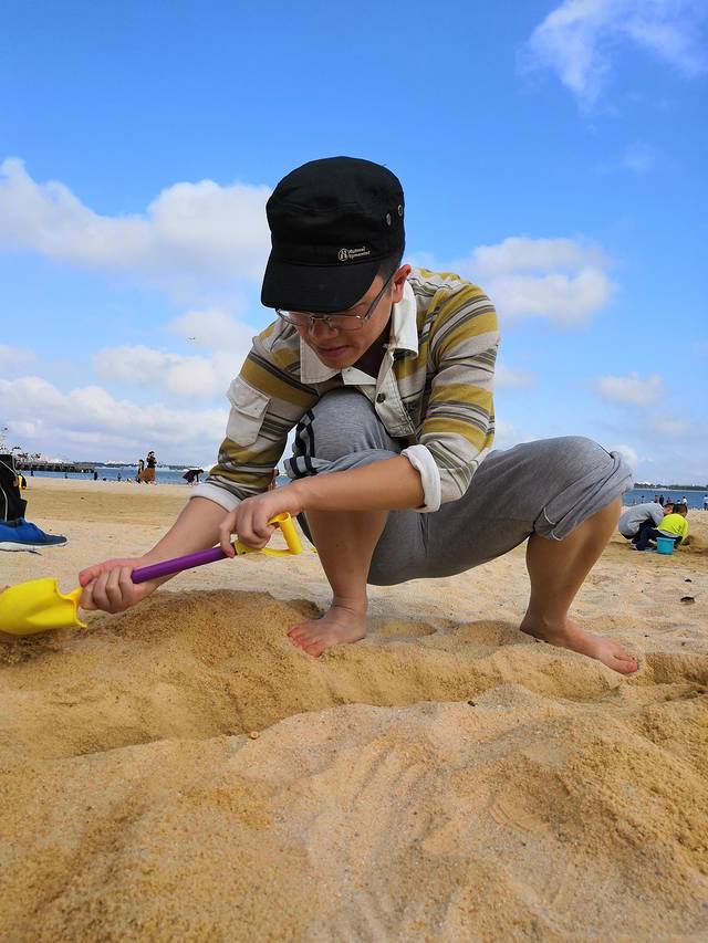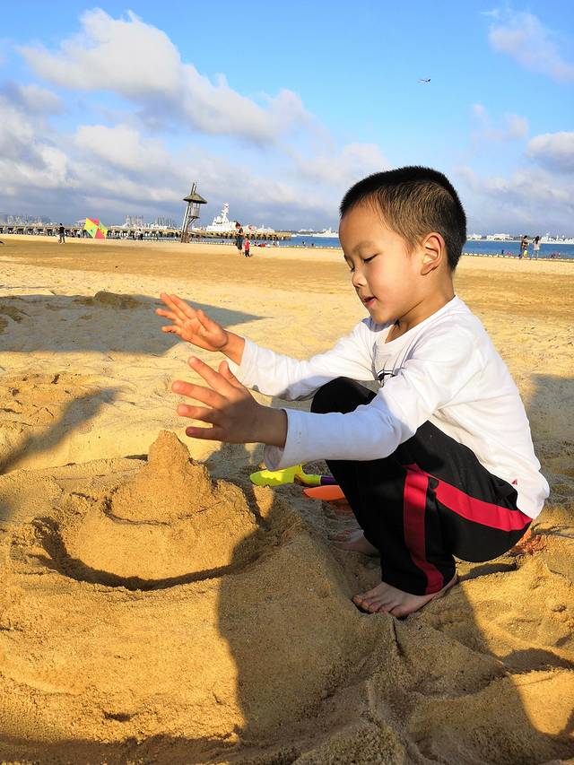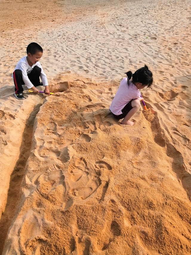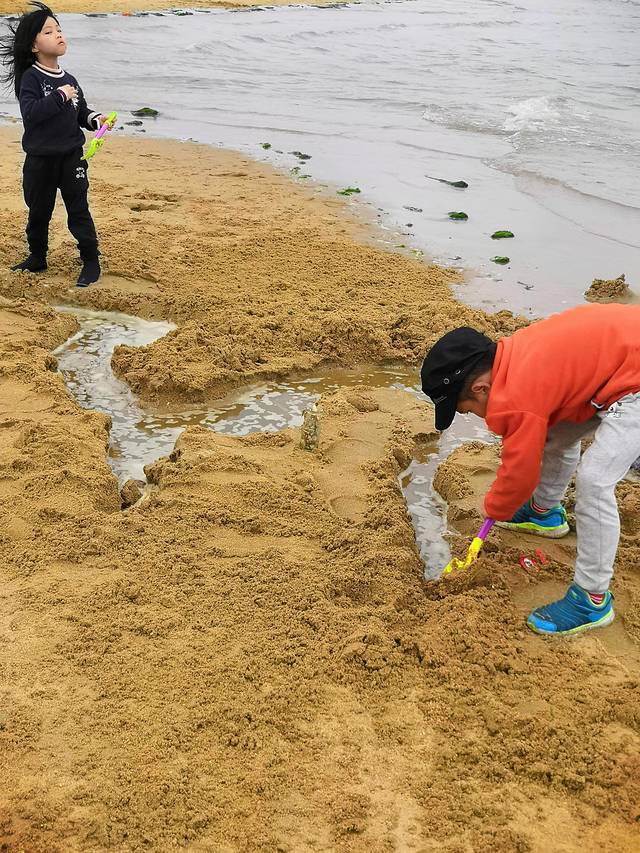 中途想了好多次,再去找个地方玩一下。但是看到孩子们玩得这么高兴,根本开不了口。让他们一直玩,他们说挖了一个大工程,把海里面的水,灌进来了。两个又叫又跳,兴奋得不行。哈哈哈。