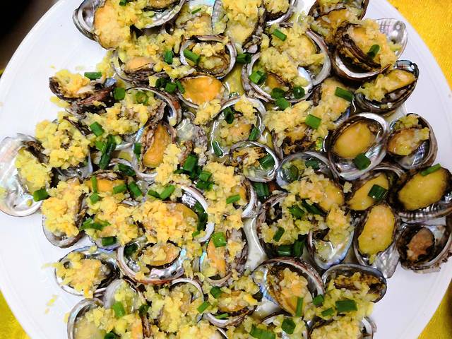 买了虾,鲍鱼在旁边的饭店里面加工。