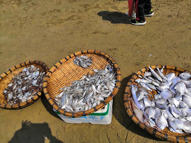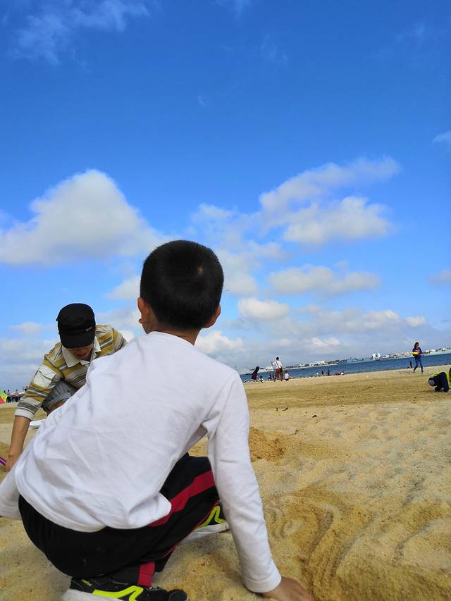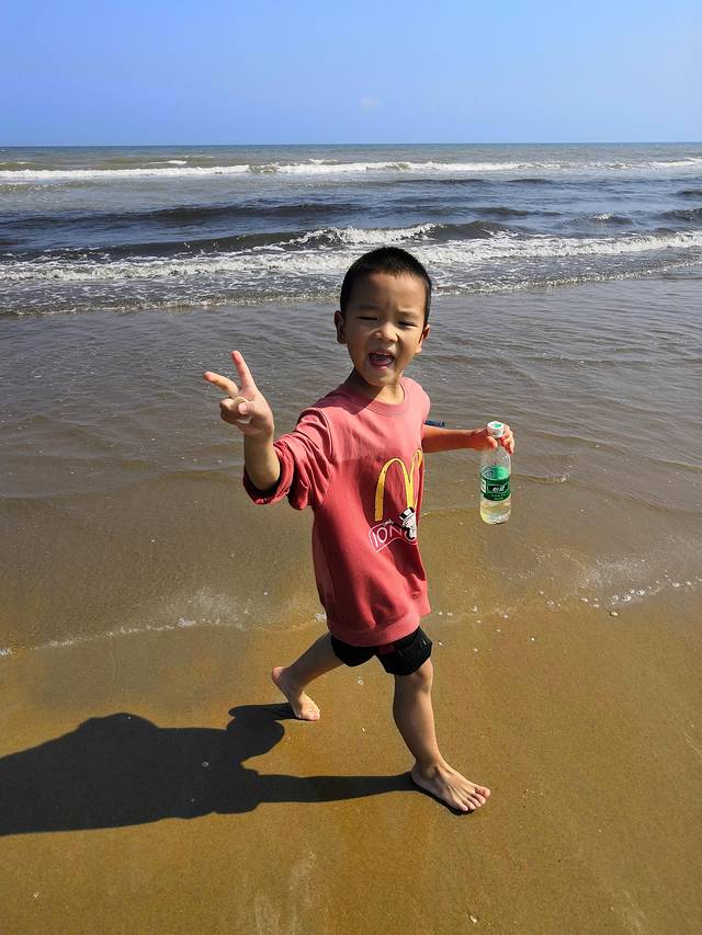 就是海的味道嘛,不至于那么难闻吧!然后,这一上午,都处在这个难闻的味道里面,以致于,我们走到前面去拍照,儿子不愿意去,一直强调,他要走了。
