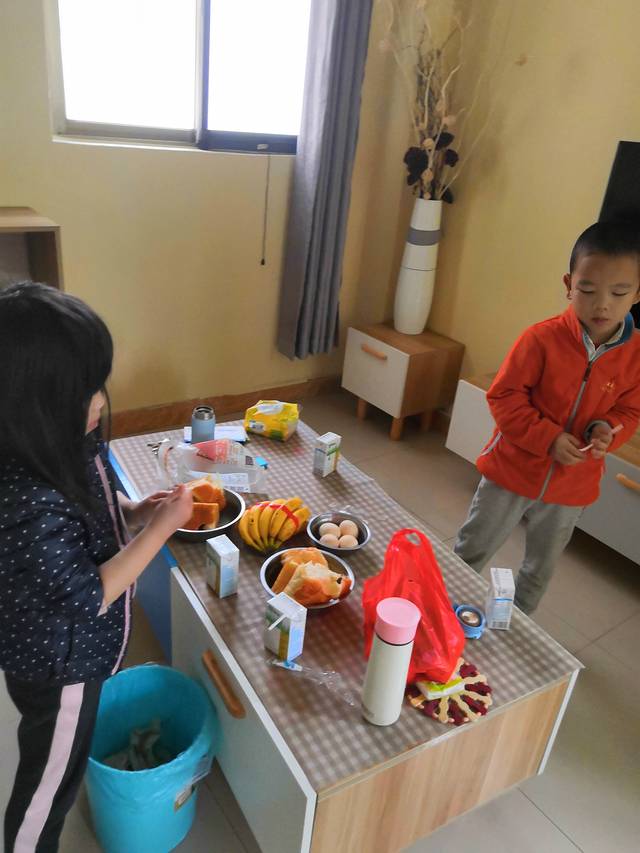 早上起来,在为我们准备早餐的小朋友们,很棒哦!