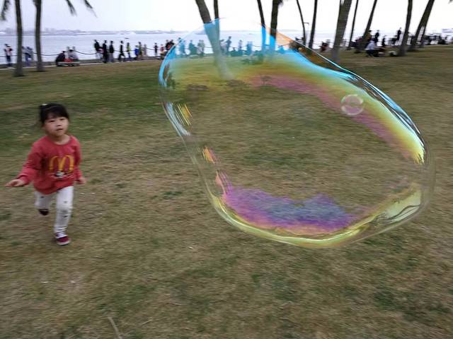老周,是小朋友们玩的泡泡哦,你确定也要加入?