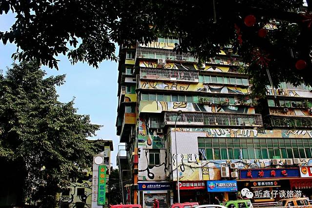 涂鸦一条街,其实就是把大街小巷的微商什么全部给涂鸦了,非常有四川美术学院的风格。并且附近全是美术店,有专门教美术的,有专门卖画的。真不愧是美术学院,一条街简直被美术店给垄断了,太有特色的,自然也是特别美丽的。