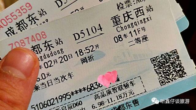 鑫仔去程选择的是动车,价格是96元,到重庆西。回程选择的是火车,到成都北,价格大概是40元。