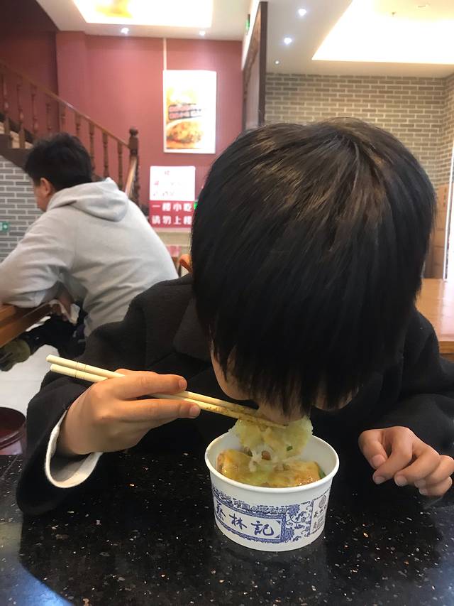 小哥哥在吃三鲜豆皮