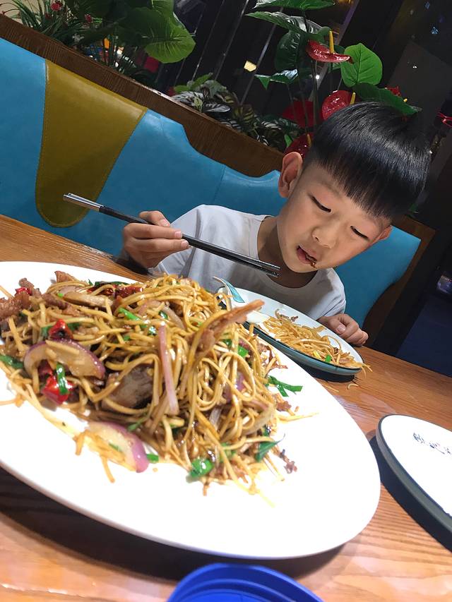 晚饭可以说一下,和瑞华美达楼下饶记菜馆,三个菜80多块钱,一个鸭肉炒面,超级好吃,这么一大盘,城城全吃光了,还有一个烧菠菜和丝瓜炒肉,其他的肉都是大菜我们也没点