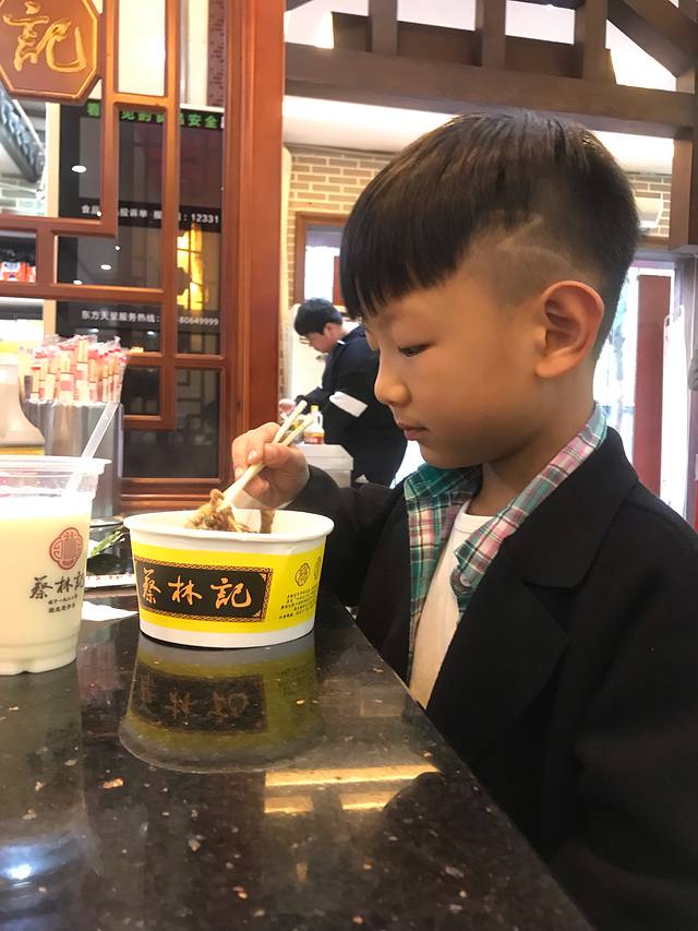 第二顿热干面,城城己经不太爱吃了,捂脸,卖热干面的大叔跟我说,你要给他拌一下,城城坚决只吃白面,不要酱
