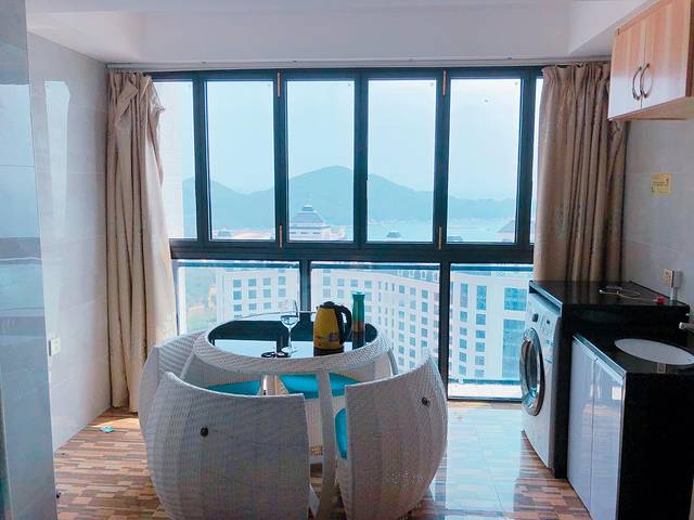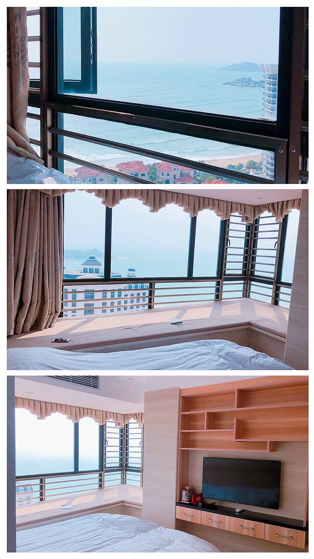 酒店比我们预想中的要好很多,两间卧室,一间卧室是1.8m的大床,有两面窗户都可以看到海,给三个女生睡。另一件卧室是1.5m的大床,有窗户,也可以看到海,两个男生睡。客厅有单独的一张床,不过不太舒服,所以另个男生睡在我们卧室的窗台,窗台很舒服,有记忆垫,也很宽敞,后来大家抢着睡窗台。