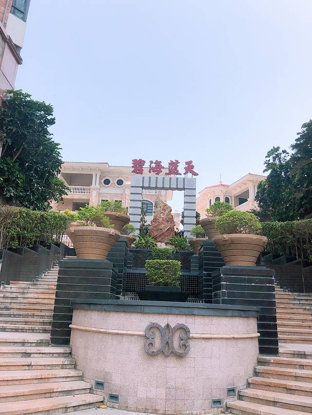 说一下酒店的环境,前台在马路边上一个小门店。这边盖了很多海景房,大部分都当成酒店在用。这个小区叫碧海蓝天,有保安,大门也有锁,很安全,小区也很干净。