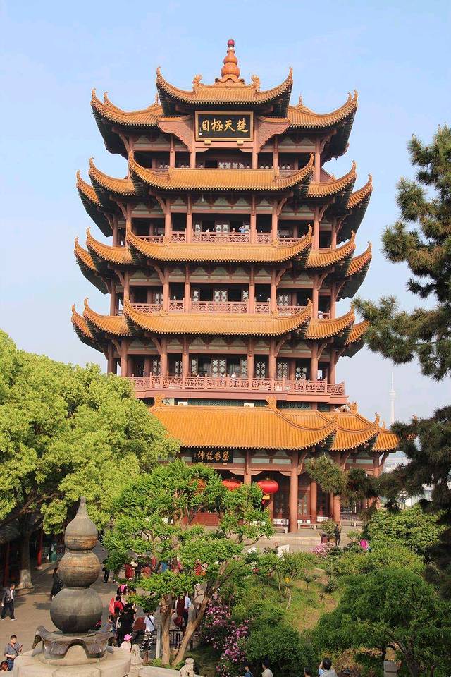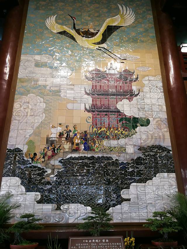 黄鹤楼名称的起源,民间故事称,黄鹤楼原为辛氏开的酒馆,一道士为报答其千杯之恩,临别时用橘子皮在墙壁上画了一只鹤,所以此鹤为黄色,称为黄鹤。当有人前来饮酒时,辛氏连拍三下手,黄鹤就会飞下来,翩翩起舞,从而使辛氏的酒店生意越开越好。