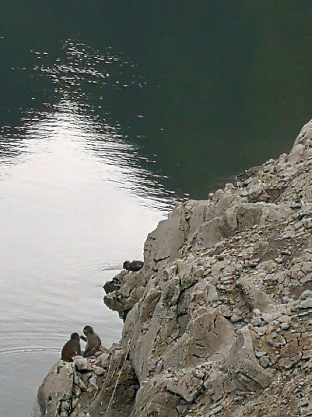 这是阿蓬江原始大峡谷中的野生猕猴,每当有游客来的时候就过来要吃的。