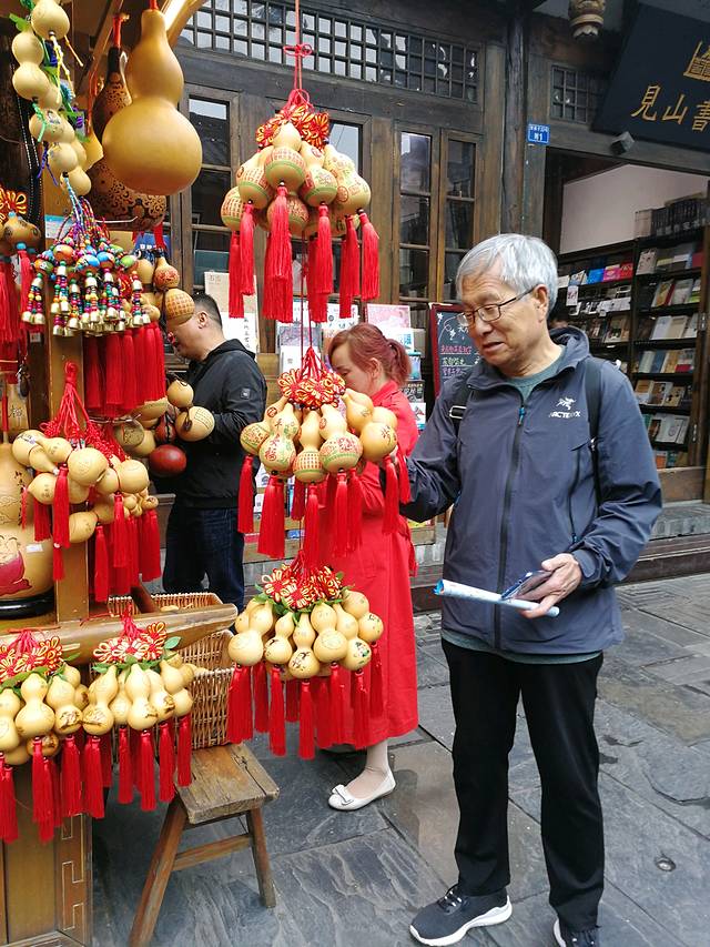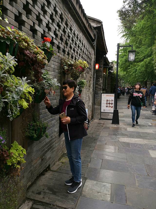 4月11日中午我们成都锦里民俗区,锦里是成都武侯祠博物馆(三国历史遗迹区、锦里民俗区、西区)的一部分,占地30000余平方米,建筑面积14000余平方米,街道全长550米,以明末清初川西民居作外衣,三国文化与成都民俗作内涵,集旅游购物、休闲娱乐为一体。