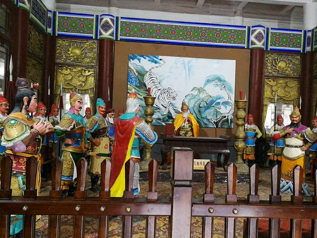山陕甘会馆武圣殿里供奉的武关公,据说手中拿书的是文关公。